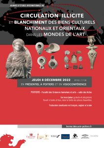 Il s’agit de réfléchir sur la circulation illicite et le blanchiment des biens culturels principalement archéologiques, issus tant de vols que de pillages, d’origine nationale ou orientale qui se retrouvent sur le marché de l’art et dans les musées. Face à la vulnérabilité des mondes de l’art dans l’acquisition de biens souvent blanchis et difficiles à détecter, il s’agit de croiser les actions des principaux acteurs engagés dans cette lutte, dans le cadre d’un dialogue transversal, concerté et interdisciplinaire, « depuis l’identification des objets à la judiciarisation des affaires ».