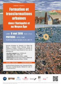 Séminaire de master 2 Archéologie de l’Antiquité et du Moyen Âge, dans le cadre du master Civilisation Histoire Patrimoine Sources de l'Université de Poitiers, organisé en partenariat entre les laboratoires CITERES / LAT (CNRS / Université François-Rabelais de Tours), HeRMA (Université de Poitiers), CESCM (CNRS / Université de Poitiers) et l'Inrap, sous la coordination de Nadine Dieudonné-Glad (HeRMA).