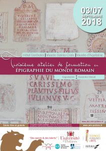 Le troisième atelier franco-italien de formation doctorale en épigraphie s’est tenu à Poitiers du 3 au 7 septembre 2018. 16 étudiants, sélectionnés parmi 25 candidats par le comité des Rencontres franco-italiennes sur l’épigraphie du monde romain, ont bénéficié d’une formation intensive alternant leçons théoriques et ateliers pratiques, sur la thématique du « métier d’épigraphiste ». Les conférences des formateurs, magnifiquement initiées par la leçon inaugurale de Silvia Orlandi, ont insisté sur la méthodologie conditionnant l’approche des inscriptions.